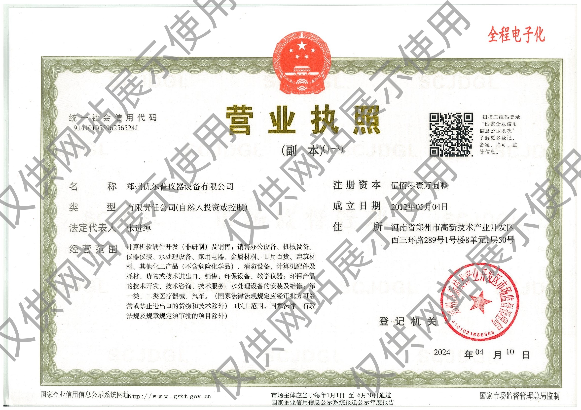 鄭州優(yōu)爾普儀器設(shè)備有限公司注冊(cè)資金501萬元,所售純水機(jī)等儀器產(chǎn)品通過ISO9001質(zhì)量體系認(rèn)證、歐盟RoHS安全認(rèn)證等多項(xiàng)認(rèn)證,所屬集團(tuán)公司獲得3A級(jí)企業(yè)認(rèn)證